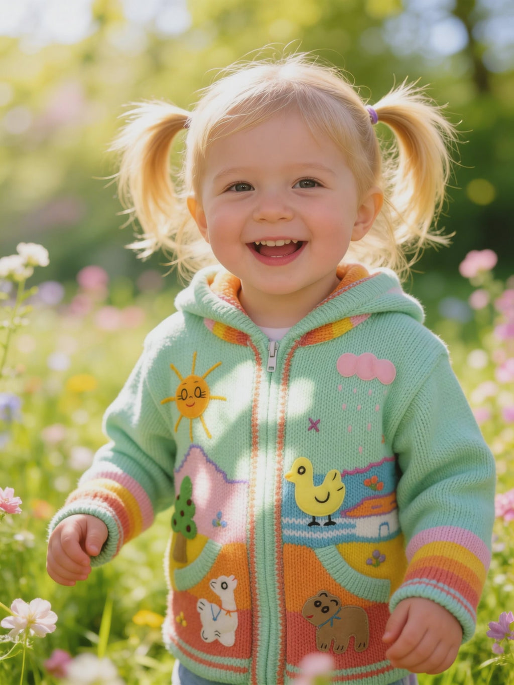 Made from 100% acrylic yarn, this heirloom-quality sweater is as practical as it is precious — easy to wash, durable for play, and gentle on skin.
