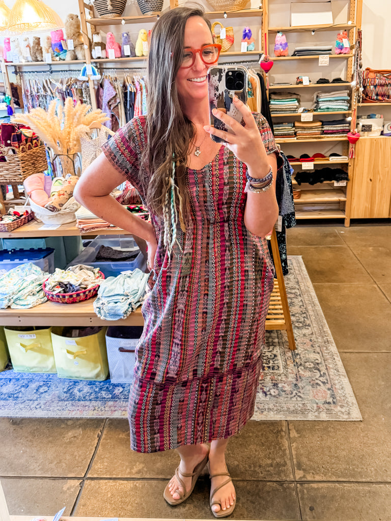 Step into timeless craftsmanship with this handmade dress from Guatemala, created from 100% cotton fabric that is woven by hand on traditional looms. Each piece is a true work of art—vibrant, breathable, and designed with care from start to finish.