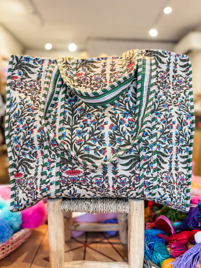 Bright, bold, and beautifully practical—this tote bag is designed to go wherever life takes you. Handcrafted in India from 100% cotton, it’s lightweight yet durable, making it the perfect companion for both everyday errands and faraway adventures. Its roomy interior easily fits all your essentials, while the vibrant patterns bring a cheerful pop of color to any outfit. Whether you’re exploring a new city, heading to the market, or just carrying your daily must-haves, this tote is as versatile as it is stylish.