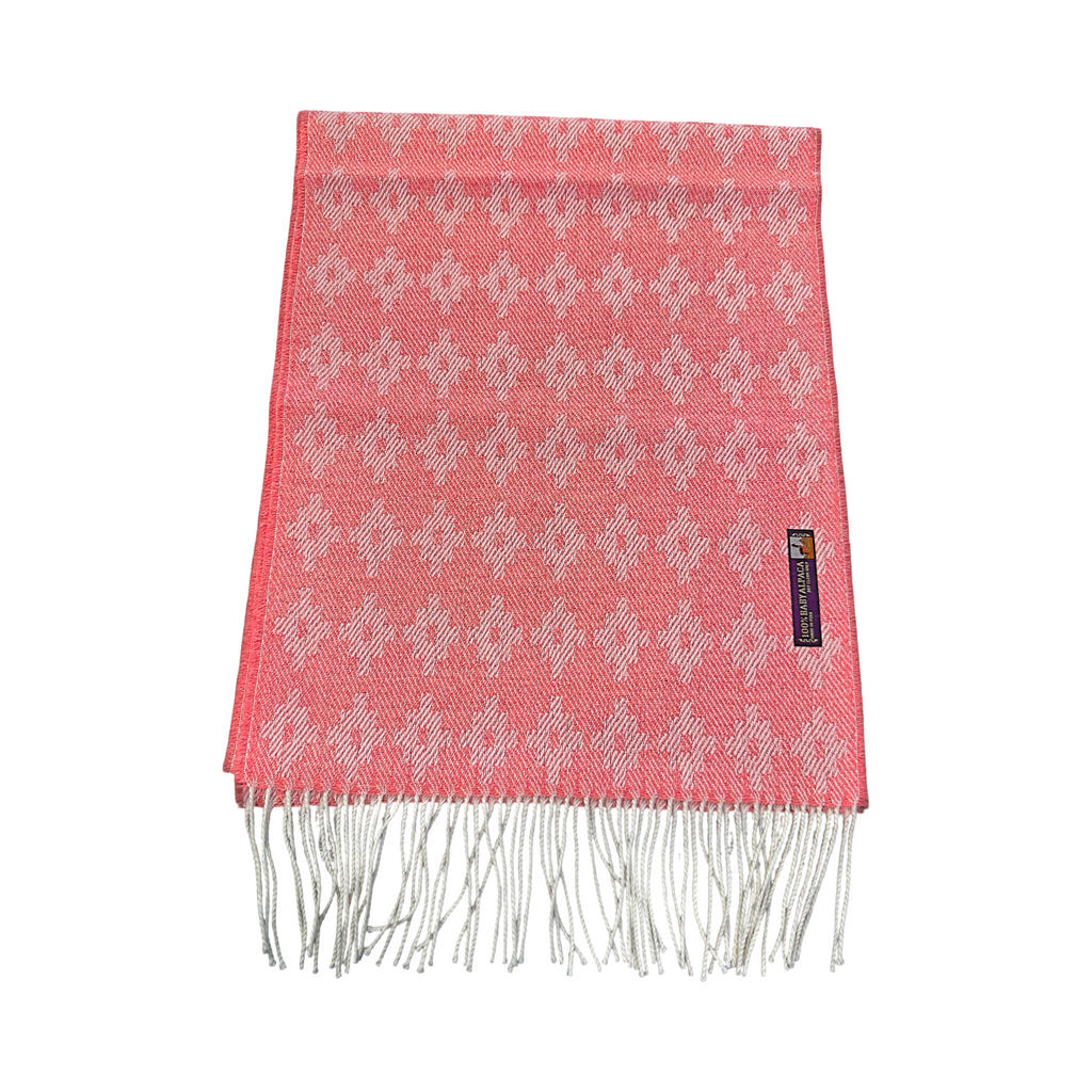 Coral Pink Woven Diamond 100% Baby Alpaca Scarf